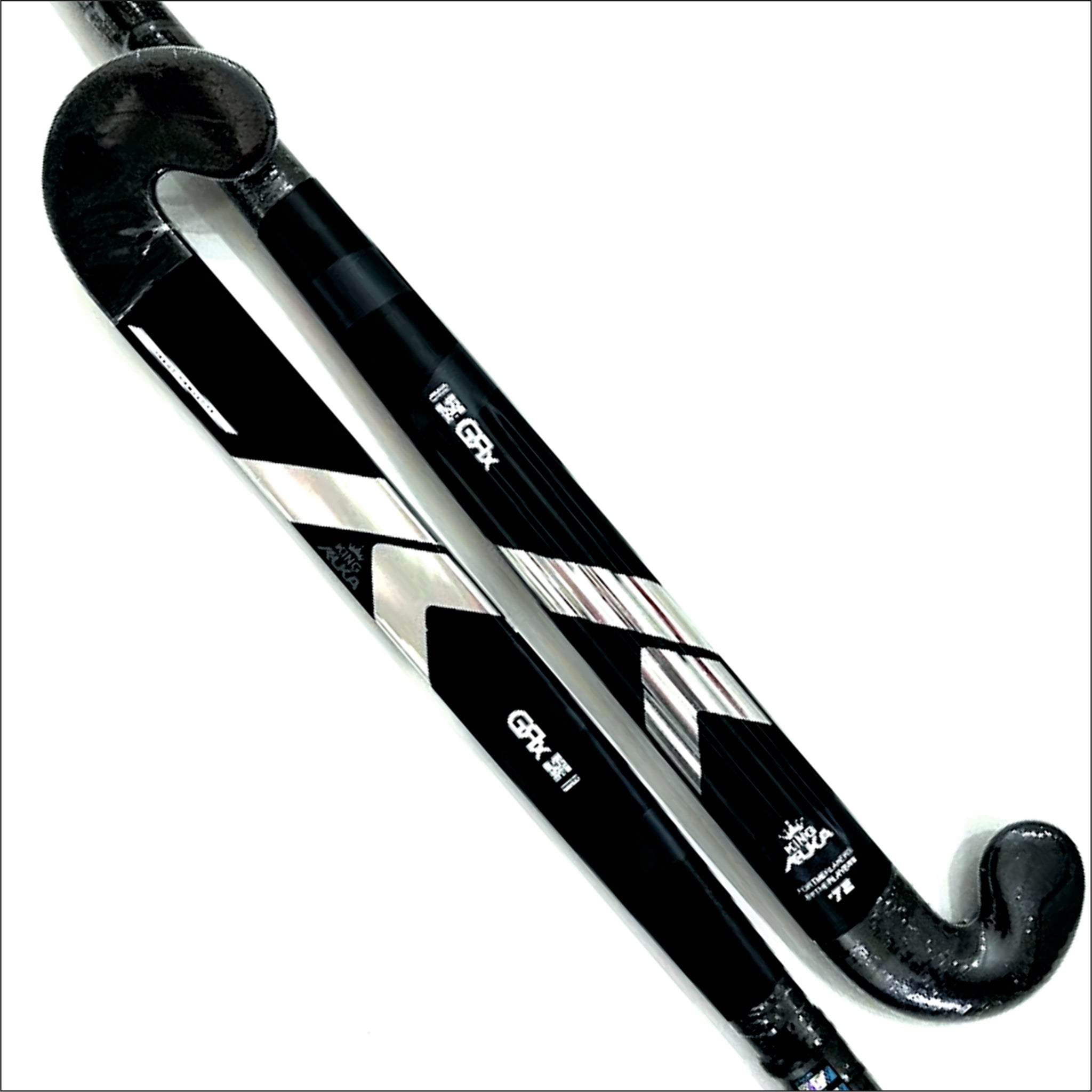 This Elite level stick shape is brought to you in the GRX design range. Matt finish with Chrome K logo. The new X95 shape has a very shallow groove on the flat side The GROOVE allows for faster ball acceleration and enhanced precision when drag flicking. Dual rods on the rear for increased power and stiffness. Superb for dribbling, tomahawk shots and can also for drag flicks. This product has been built using the latest materials and technic
